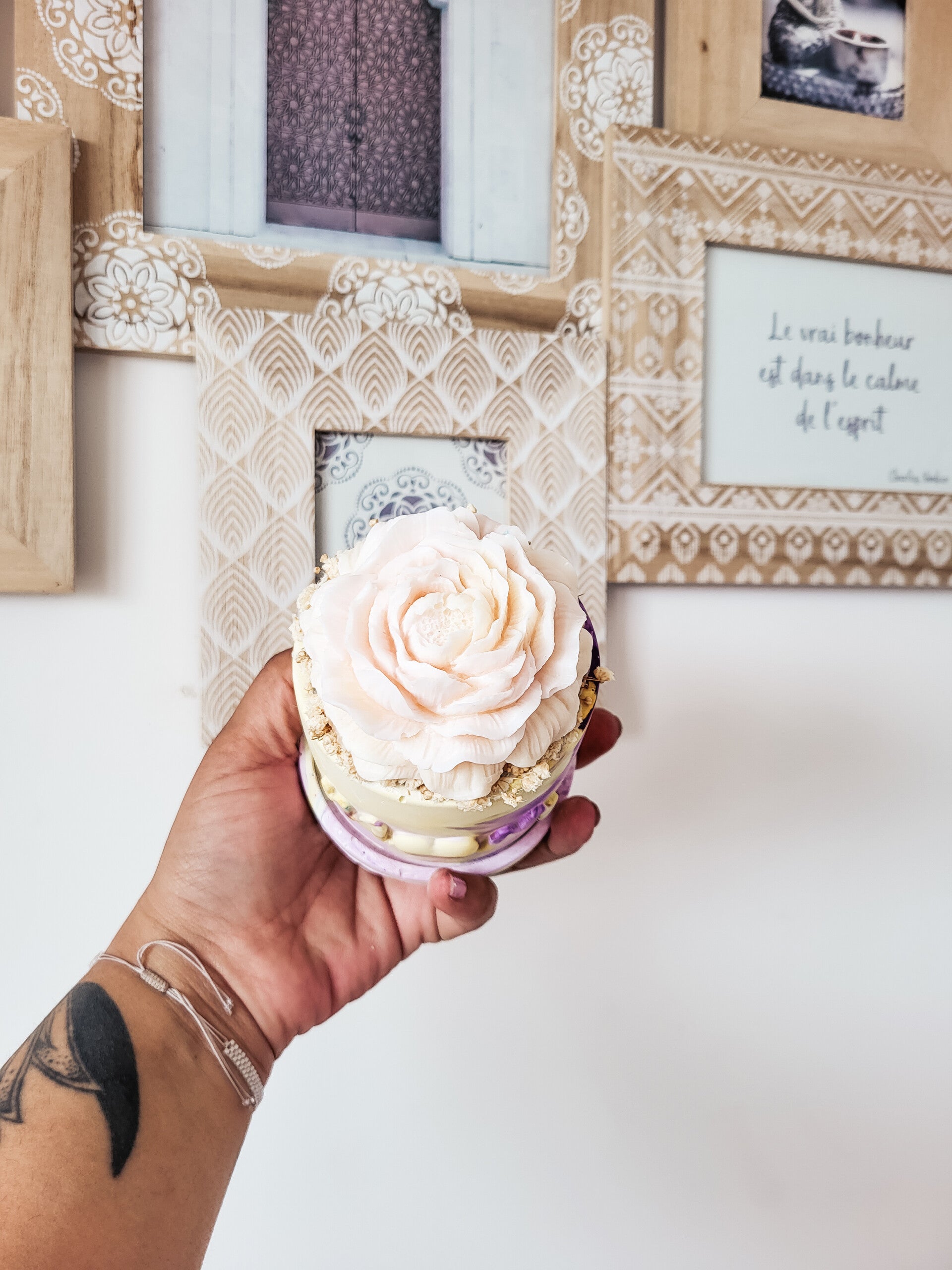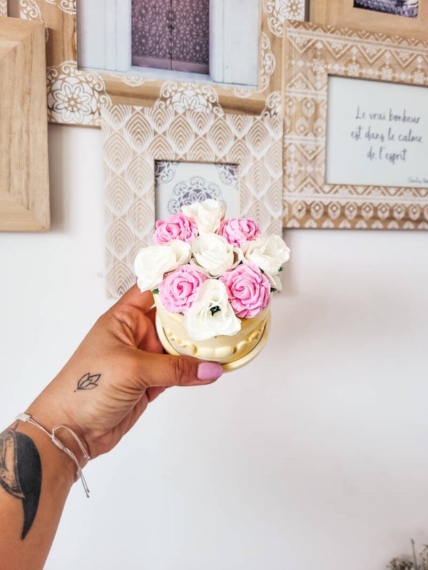 Pot fait main en plâtre & fleur en cire parfumé