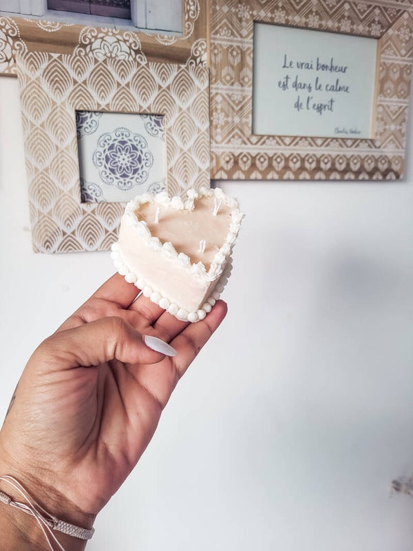Cette bougie en cire végétale en forme de cœur parfumée est l'accessoire parfait pour une ambiance romantique.